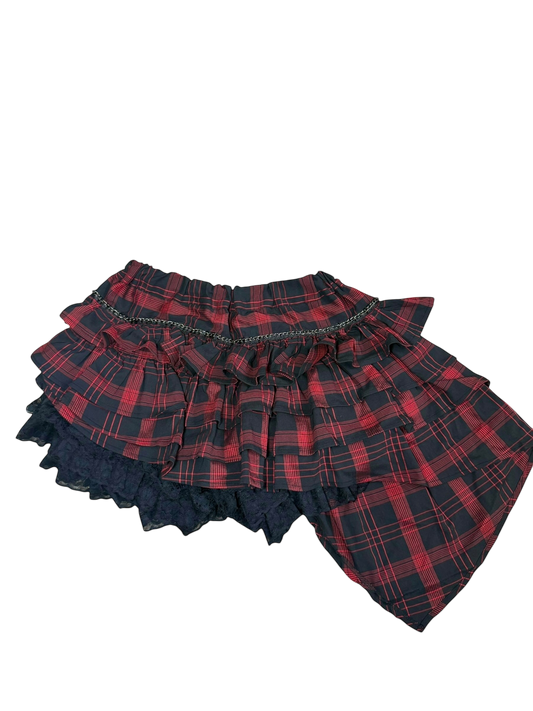Volcan & Aphrodite Plaid Laced Mini Skirt Trim Ruffle Skirt